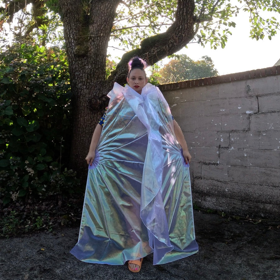Embrace your inner mermaid with these fabulous iridescent fans. The sturdy, satin hand pads make them easier to hold open, allowing for feather fan style movements. Sold as a set of two. This colorway glows under blacklight!